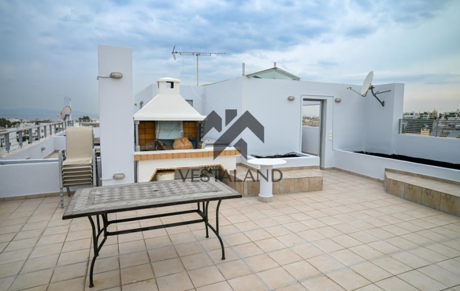 Μοναδική οροφομεζονέτα δύο επιπέδων 2ος–3ος όροφος, συνολικής επιφάνειας 145 τ.μ.,Το πρώτο επίπεδο περιλαμβάνει ευρύχωρο και φωτεινό καθιστικό με τζάκι, άνετο χώρο τραπεζαρίας, σύγχρονη και λειτουργική κουζίνα, καθώς και WC. Στο δεύτερο επίπεδο βρίσκονται 3 υπνοδωμάτια, 1 μπάνιο και 1 επιπλέον WC με ντουζιέρα. Η κατοικία διαθέτει αποκλειστική χρήση τμήματος της ταράτσας 75 τ.μ., με χώρο BBQ και όμορφη θέα προς τη θάλασσα, ιδανικό σημείο για χαλάρωση και φιλοξενία. Στο υπόγειο περιλαμβάνονται 2 θέσεις στάθμευσης και αποθήκη. Το κτίριο προσφέρει επιπλέον μεγάλο κοινόχρηστο κήπο με πισίνα. Τιμή: 770.000€. VestaLand, Τηλ. Επικοινωνίας: 21 0609 6499, email: [email protected]